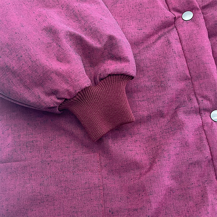前身頃にボタンを使い袖口にはリブを使ったジャケットタイプのはんてんです。