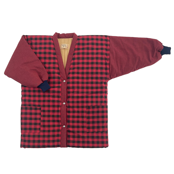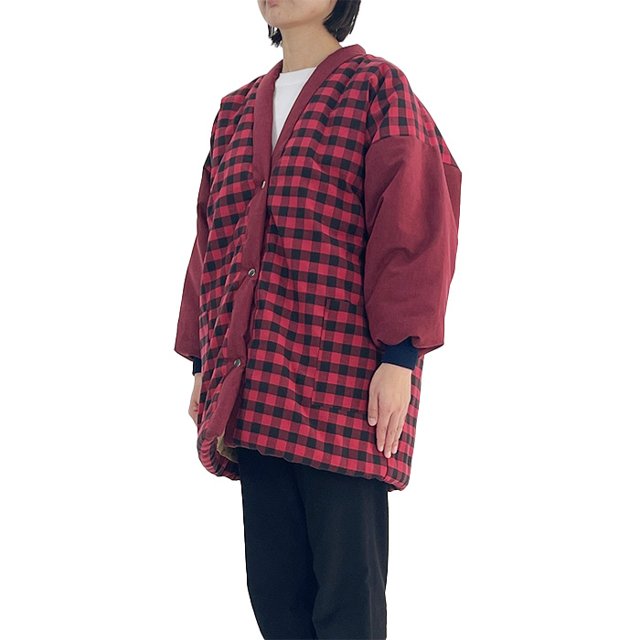 前身頃にボタンを使い袖口にはリブを使ったジャケットタイプのはんてんです。